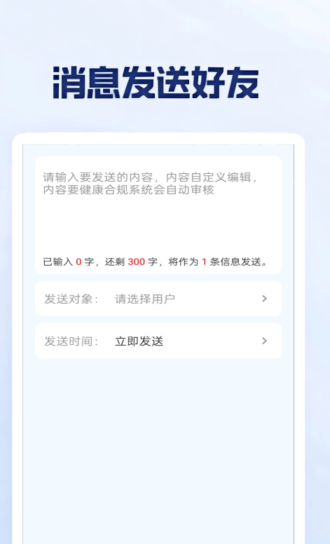 这是一款专为高频次、大体量短信发送设计的工具,单次可完成数百条消息的并行推送,响应迅速、无明显卡顿,适合机关单位、社区团体及教育机构等组织类用户日常使用。会员服务资费亲民,投入成本低,覆盖范围广,部署门槛不高,下载安装后即可快速投入实际工作流程。