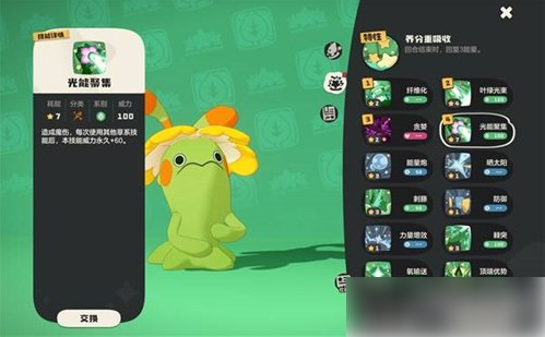 奇丽花需要改为恶系血脉,用任意血脉秘药加10个恶系碎晶能在炼金锅置换,改恶系血脉可以学贪婪,能够增加吸血,加上天赋的回能直接成永动机了。然后需要一个技能石,光能聚集,光能聚集可以抓大蒲公英,释放3次可以完成课题研究,给一个技能石还有制造书。光能聚集可以通过释放其他草系技能来不断叠加增伤,配合吸血回能直接小无敌。