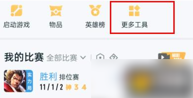 3.进入软件页面后点击下面【战绩】选项,点击后在战绩页面可以看到有一个【更多工具】选项,点击进入;