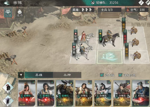 这个阵容由许褚和周泰以及荀彧搭配组成,对于普通的玩家来说,用这一套阵容比较合适,不用花太多成本就可以成型。玩家可以准备好元宝去购买30个传奇将魂的自选箱子,拿到足够的材料之后,重点是提升整体的作战能力。实际让英雄站位的时候,可以按照这个思路来安排,先确定好英雄的摆放位置,周泰和荀彧不要站在追击的格子上。许褚要放在两个人对应的追击格子上,只有这样才能打出对应的效果,建议新手玩家每一步都需要按顺序来,千万不要放错位置,放错了会影响整体的效果。