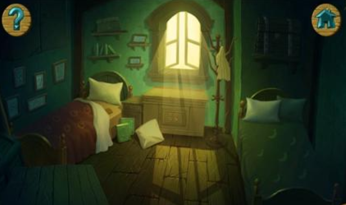 第二关转入糖果屋主题空间,谜题复杂度明显跃升。玩家需先获取棒棒糖造型道具,通过拼图重组获得小刀;屋内东、南、西、北四个方位的棒棒糖装置实为操作序列提示器。完成木柄安装后,依方向指令输入密码,触发绿色眼睛道具生成。使用小刀割断绳索,方可进入下一物品收集阶段。本关强调道具功能转化与空间方位感知,对观察精度与操作时序提出更高要求。