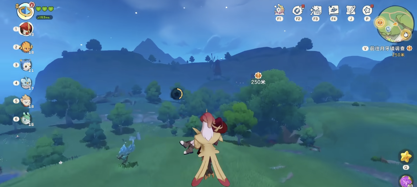 获取的第一步就是找到他的刷新点,这只精灵主要分布在晨曦山区,你需要前往晨曦山的日落高地附近进行探索,先通过传送点到达晨曦山,然后沿着山坡向上走,穿过一片开阔的草地到达视野极佳的悬崖边缘,因为它是野外随机的刷新精灵,可能需要你耐心在附近转转,或者不同时间段,尝试白天的刷新几率可能会更高一些。