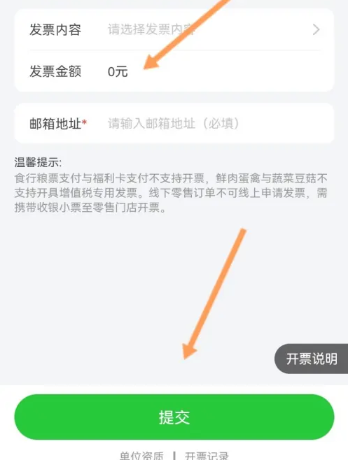 最后输入发票信息,点击下面的提交选项即可。