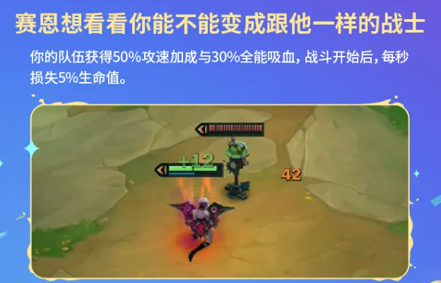 不死血魔流的设定很激进,全队50%攻速和30%全能吸血,代价是战斗开始后每秒扣5%生命值。生命值会越打越少,但吸血和攻速足够高的话,打快一点完全能撑下来。这个符文不适合打持久战,要尽快输出解决战斗,越拖越危险。