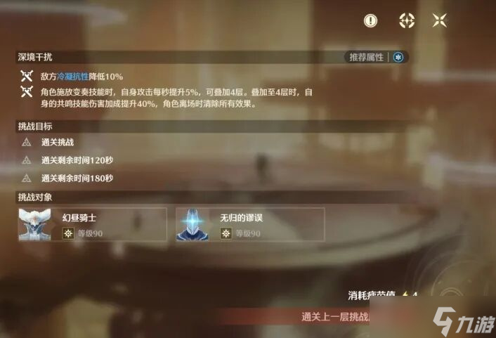 先来看看这次逆境深塔左右塔的更新情况,本次左塔(残响之塔)安排的塔主BOSS是幻昼骑士和无归,双衍射抗性怪,左塔给到的挑战机制为敌方冷凝抗性降低,施放变奏时,可以提升攻击和共鸣技能伤害。
