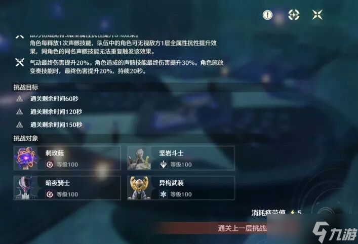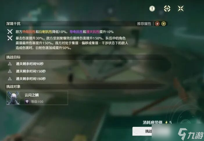 给到的挑战机制为暴击伤害提升,受聚爆效应最终伤害提升150%,同时队伍中的角色震谐最终伤害获得提升,对处于集谐偏移或集谐干涉状态下的敌人造成伤害还能提升衍射伤害。