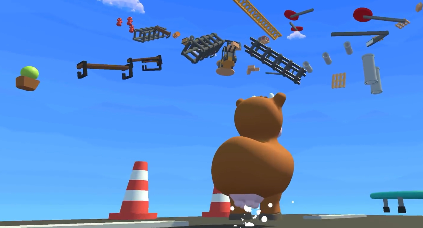 当然了,要想抵达终点可不是那么简单的,向上的道路上虽然有着各种杂物能成为玩家们攀登的阶梯,但它们互相之间并不连在一起,而且相隔的距离也都非常的随机,玩家们操控动物跳跃时得观察好它们之间的距离,并控制好动物跳跃时的落点,这样才能踩在杂物上稳步攀登。同时,道路上还会有各种机关会为玩家们制造麻烦,若玩家们被这些机关给击中,很容易就会被推出杂物的可站立区域,从而直接空中掉下去,想要登顶只能重新来进行尝试。
