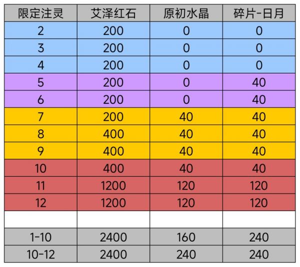 上图为全保底情况下所需材料,运气好可以触发幸运注灵,直升整级