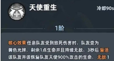 天使并非是站在前线的输出核心,所有的技能机制都是围绕守护。从一开始的复活,再到范围护盾,就可以给团队打造一个生存防线,能有效提升全队的被动增益效果。让队伍在高压作战的过程中,可以大幅度的提升容错的几率,不管是高难度的副本,还是限时生存挑战。有天使存在,那整个团队的作战持续能力就可以迎来飞的提升。天使的核心技能也会有各种不同的妙用,解锁马上就会生效的天使重生,可以让队友在受到致死伤害时变成黄色光球。