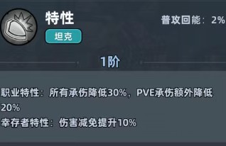 1、坦克特性:职业特性和其他坦克一样,所有承伤降低,但是幸存者特性位伤害减免。
