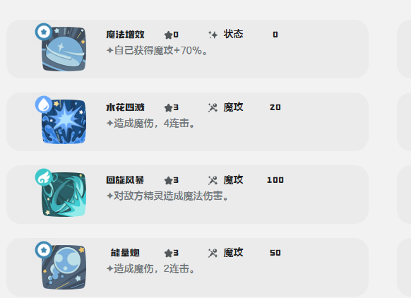 技能搭配建议注重功能协同:推荐组合有「治愈水波」(回复自身HP并清除异常状态)、「水之护盾」(提供固定数值减伤与反弹效果)及「潮汐之舞」(提升速度并附加水系增益),三者配合能大幅提升续航能力和战场容错率。