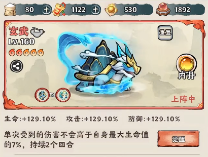 第三个为大家推荐的叫做玄武,玄武的话,更适合喜欢玩反伤流的玩家去体验它,作为此类灵兽效果带来的能力是每间隔两个回合的时候,可以带来自身技能的释放,此时它保证的是我方主角身上的攻击能力,而且可以带来142%提升的时候还有一定的治疗量,所以对于反伤机制来说,这里提供的生存保障还是非常有必要的,后期在自身叠加了5层生存治疗效果之后,保证主角在生存时长上面不会受到对面控制类型角色的影响了。