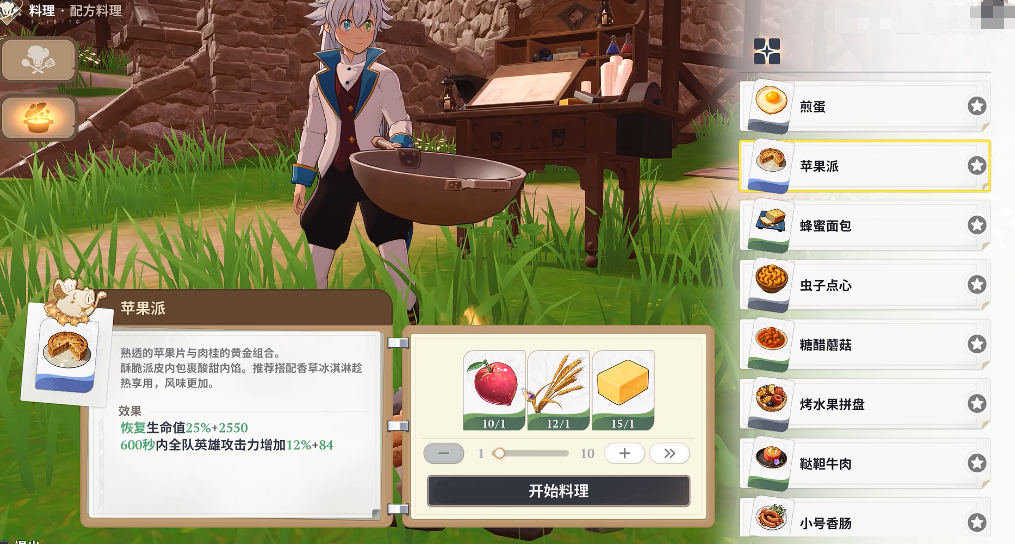 所以前期如果拿到星之书,但是大家不知道它有什么用的话,一定记得不要丢掉,后期解锁了角色升级各种培养机制的时候,这个星之书就可以用得上了,而在前期玩家接触的各类生存玩法当中,烹饪绝对是很多玩家喜欢去进行体验的,这也是玩家比较容易错过的以类型玩法,因为后期大家收集了各种食材,进行菜肴制作的时候,还可以在战斗前期,直接使用这些食物来保证后期在战斗场内会有额外的提升效果,游戏中有很多餐点可以增加大家的攻击能力,也有各种餐点可以增加防御的能力,在很多boss战之前,大家通过这里的食物来进行进餐都可以保证自己在能力效果上面更高,当然了,装备也是同样有这类增伤或者是增发能力的效果,大家想要获取更多战斗优势的话,这里的烹饪系统是一定要学会制作更多菜肴的。
