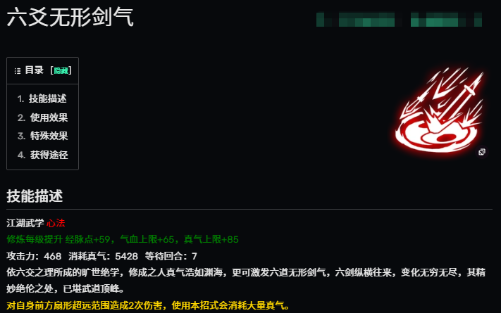 第二个为大家推荐的就是六爻无形剑气,这个剑法招式当中对于其中的修炼提升效果都非常高,而且在使用这个功法的时候,还可以对自身前方扇形范围当中的敌人,造成两次连击的伤害,使用这个招式的时候,同样也会消耗大量的真气,使用了此类心法攻击敌人之后,每一次攻击都会根据目标对自身添加两层强攻的能力,持续3个回合之后,每一层的强攻都会让他攻击能力上面增加5%的数值,最高的情况下还会叠加9层,所以最后达到45%的增长。