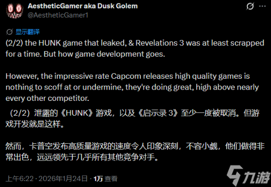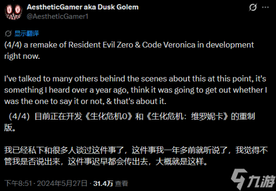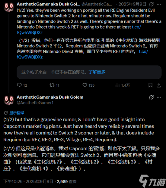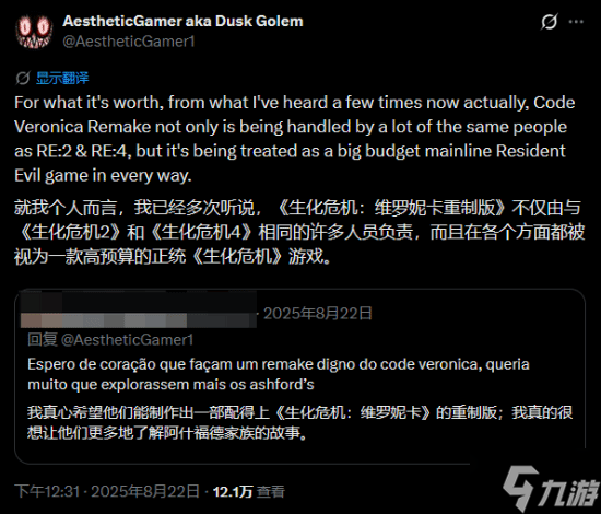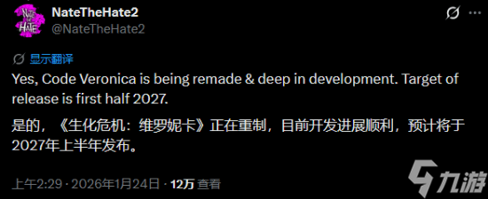 来自NateTheHate和Dusk Golem,后者补充称,所有采用RE引擎的《生化危机》游戏都会登陆Switch 2,而这也将包括《生化危机:代号维罗妮卡》重制版以及未来的新作。