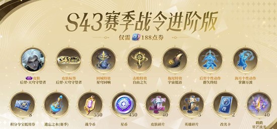 以上就是号令CC小编为你收集的王者荣耀S43赛季战令多少钱 S43战令价格,希望帮到大家,更多相关的文章请关注号令CC。