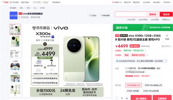目前,京东已开启同步预售,vivo X300s可享国补,到手价4499元起,参与vivo X300 Ultra和vivo X300s预售,可享24期免息,以旧换新至高补贴1500元(含学生/老用户额外补贴200元、购X300 Ultra时相机回收额外补贴200元),加99元抢京东尊享影像服务包套装(1年碎屏保+1年镜头保+旅行丢失保+1年只换不修+1年观影观赛保+1年激光险),晒单至高赢站内50元E卡、站外50元E卡,价值超4500元互联网权益礼包,价值404元200GB云服务空间两年卡等福利,参与vivo X300 Ultra预售还可享加399元抢X300 Ultra京东定制礼盒套装(X300 Ultra手机+DJI大疆麦克风+闪迪固态硬盘),参与vivo X300s预售还可享加99元抢X300s京东定制礼盒套装(X300s手机+手持云台+手机壳+手机膜)。