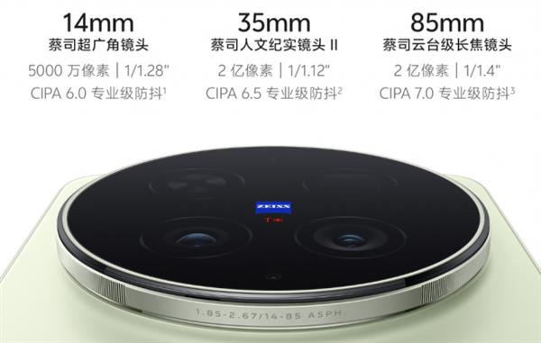 vivo X300s搭载蔡司2亿超级主摄、蔡司APO超级长焦、蔡司超视野超广角摄像头、蔡司5000万像素超清AF前摄、X300 Ultra同款全焦段变焦闪光灯;支持AI创作相机,人像更真实、画质更清晰、更有氛围感,还带来AI旅拍人像、AI二次元。