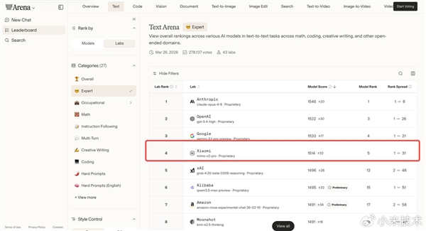 该榜单采用独特的“双盲测试”机制,由全球真实用户根据回答质量投票,杜绝刷榜行为,其Arena Expert板块更是聚焦高难度任务,此次成绩充分证明MiMo-V2-Pro具备处理专家级复杂任务的顶尖性能。