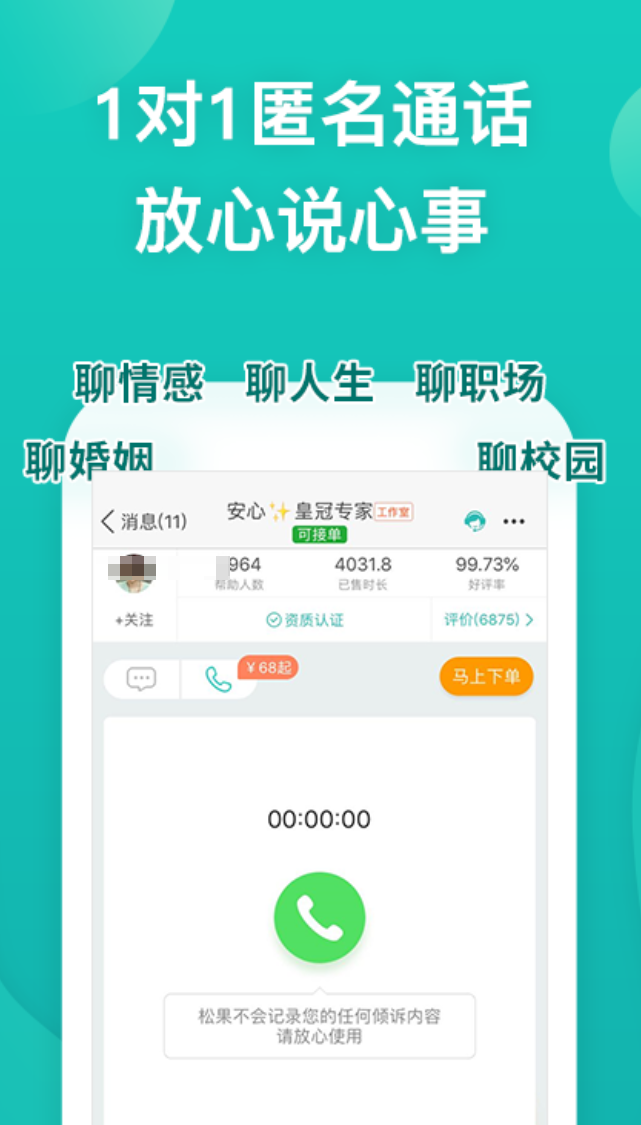 面向心理疏导与情绪释放场景设计,无需手机号或社交账号注册,匿名接入即可发起文字或语音倾诉。全程无日志记录,服务端不留存任何对话内容,客户端本地亦不生成缓存文件。内置实时变声模块,支持性别转换、音调调节等参数设定,进一步强化身份隐匿性。平台汇聚超十万经过基础培训的倾听者,按情感关系、婚姻家庭、职场压力、心理健康等维度分类排班,确保响应及时性与领域匹配度。