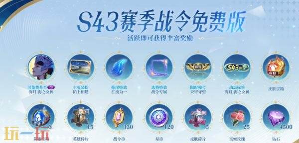 王者荣耀S43赛季战令——“冲向全球”主题赛季战令将于4月1日版本更新后上线游戏商城!此次“冲向全球”系列以未来复古的奇幻风格为主,为海月设计了全新皮肤:【海月-海之女神】初始为勇者品级皮肤,标签为“S43限定”,可免费提升至史诗品级,将于“冲向全球”主题赛季战令更新后上线,获取方式为:S43赛季战令免费版5级获取勇者品级,免费版40级可提升至史诗品级。