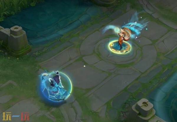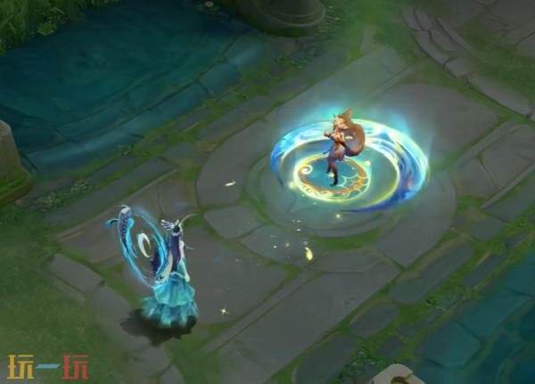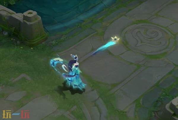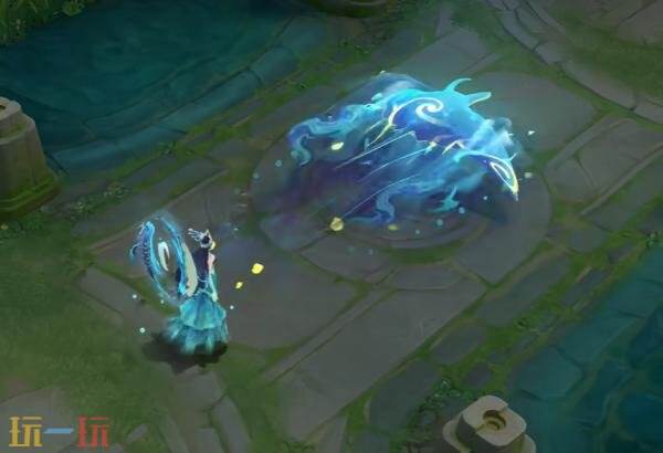 一技能:魔鬼鱼伴着海洋之力的幽光游曳而出,花瓣和气泡在带起的水波中飘浮。