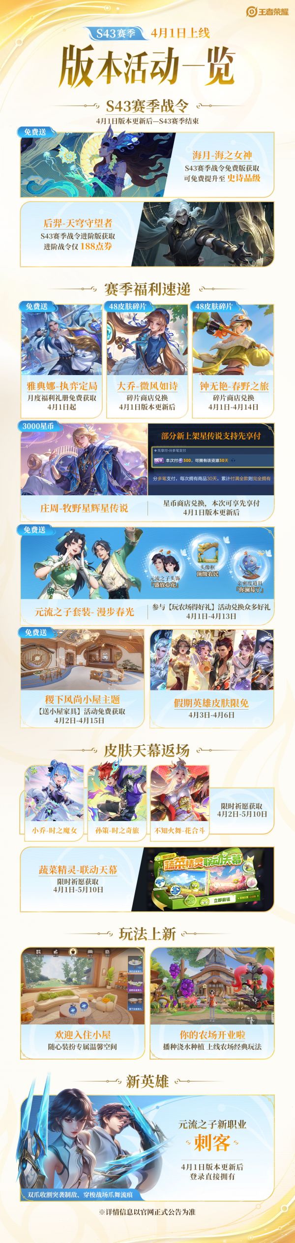 结语:上面就是号令cc的小编为你收集的《王者荣耀》S43赛季正式开启:海月史诗皮肤免费领,希望能帮助到小伙伴们。