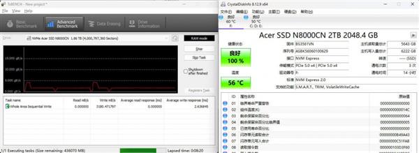 下面来看看这款宏碁PCIe 5.0固态硬盘N8000的实际表现如何: