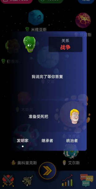 星土开荒建帝国,策略布局定乾坤,玩家可以从建筑家、科学家、将军三个角色中选择,每个角色都有专属能力,适配不同的发展策略,玩法灵活多样,每颗行星都有不同的资源储备、温度条件和初始人口,玩家需要结合行星特点,合理分配人口和资源,调整发展策略,考验规划能力,还能自定义战舰外观和属性,打造专属舰队,战斗采用回合制,节奏舒缓,不用急着操作。