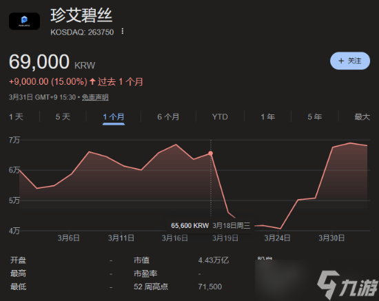 《红色沙漠》开发商Pearl Abyss的股价在经历剧烈波动后,已恢复至游戏媒体评测解禁前水平。截至今日韩国股市开盘,股价上涨15%,报69,000韩元。