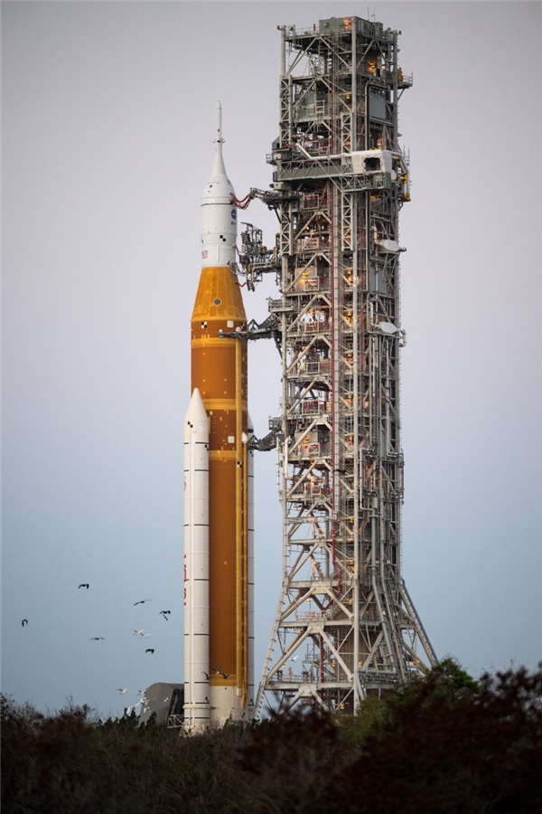 目前各项准备工作已完成关键环节,工程人员检查确认火箭4台发动机状态正常、上面级安全稳定,充满猎户座飞船飞行电池并启动火箭芯级飞行电池充电。