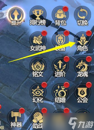 1、入口:主界面右下方【角色】→【神赐】