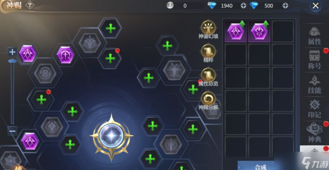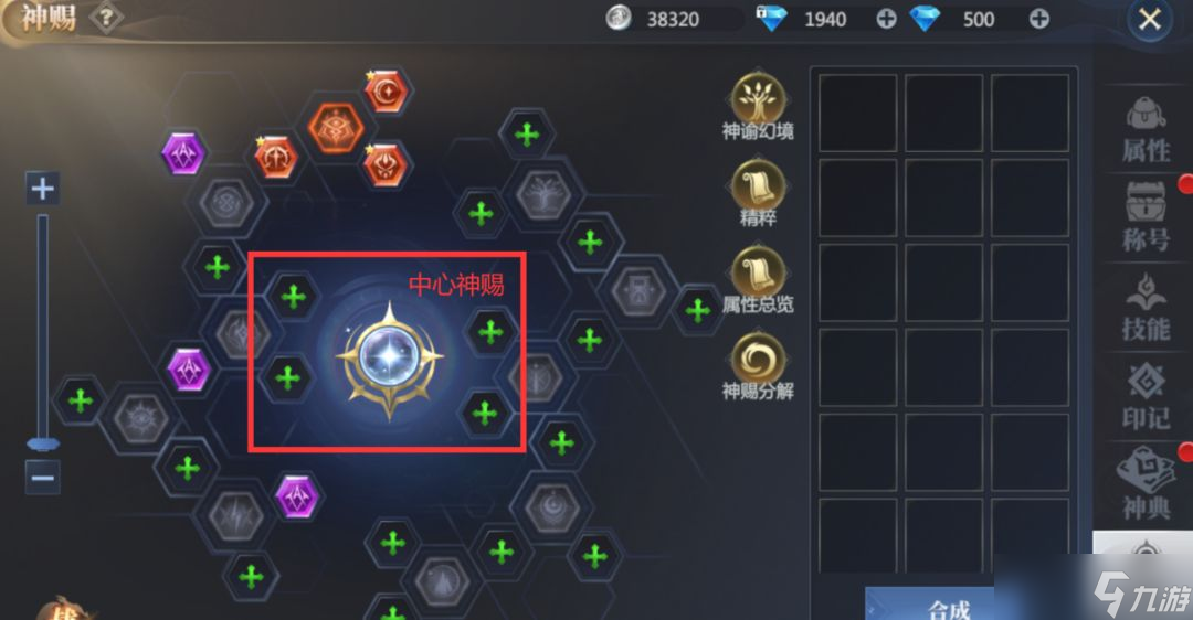 2、神赐装备∶神赐装备分为外圈神赐和中心神赐,每种神赐仅可装备在对应的神赐孔位上。