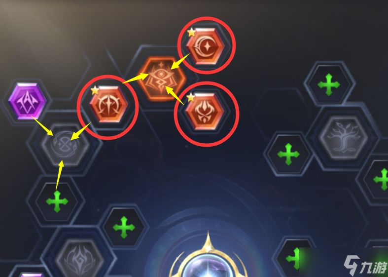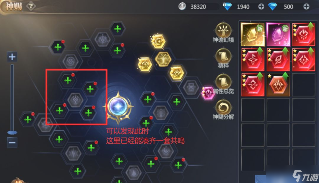 4、节点精粹︰当神赐节点关联孔位均穿戴金色3星的神赐时,可开启节点精粹。