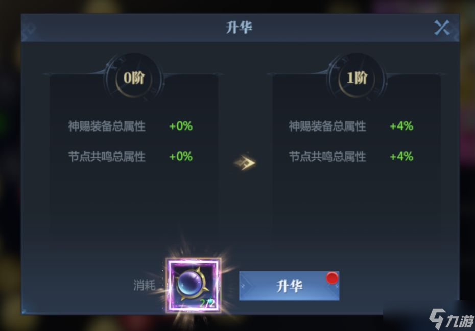 5、神赐升华:可以消耗神谕之兆提升神赐升华等级,提升后可百分比提高已穿戴神赐装备的属性和节点共鸣的固定值属性,未穿戴神赐装备则加成属性不生效