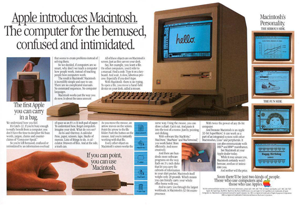 Macintosh 是世界上第一款成功商业化的图形界面电脑,用鼠标替代了键盘输入,用图标和菜单替代了复杂的指令代码,这对当时还在用命令行的电脑,简直是降维打击。