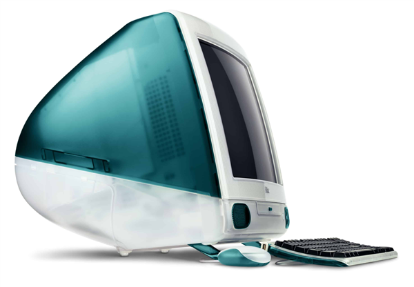 时间来到 1998 年,乔布斯回归后的第一年,苹果推出了 iMac,这台半透明的一体机,长得跟当时所有电脑都不一样,没有乱七八糟的线缆,打开包装,插上电就能用。