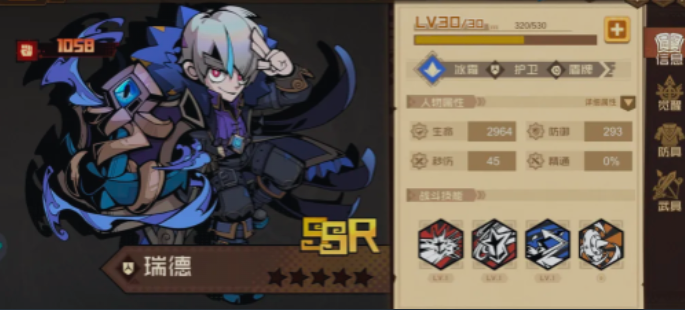 这套阵容当中,大家可以玩的是目前更适合的主流剧情当中进行推图的阵容,首先放一个前排角色叫做瑞德,瑞德在前期输出的话,他带的各种功能也是非常适合进行承伤的,另外他自己的终极技能当中带的范、效果以及各种单体输出,还可以给敌人造成击退的能力,在敌方输出站位比较紧凑的时候,我方可以带来一个足够安全的输出环境,他的被动能力提供的护盾叠加能力也是非常适合前排角色,来给其他的角色造成护盾加成,另外他在前排受到攻击的时候,还有25%的概率可以触发一个全队后撤的机制,这个机制对于目前适应于一些boss爆发时期的话,我方生存概率也会更高,可以用类似于全体闪避的动作。