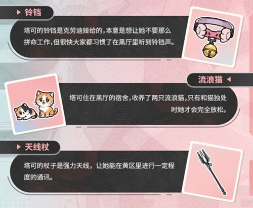 然而,角色立体的一面体现在她的私人生活中。塔可私下里收养了两只流浪猫,照料这些小生命的过程,是她卸下职责重压、获得慰藉的重要方式。这种强烈的反差感,恰恰揭示了她精神韧性的来源:在绿梦时空之声的残酷背景下,对生命的珍视与柔软的情感联结,成为了她持续前行的核心动力。