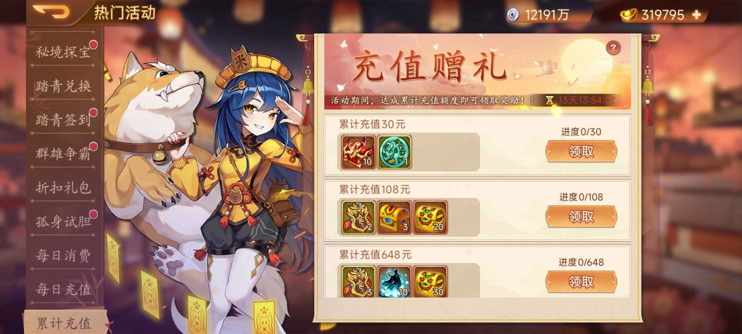 活动内容:活动期间,达成累计充值额度即可领取奖励!
