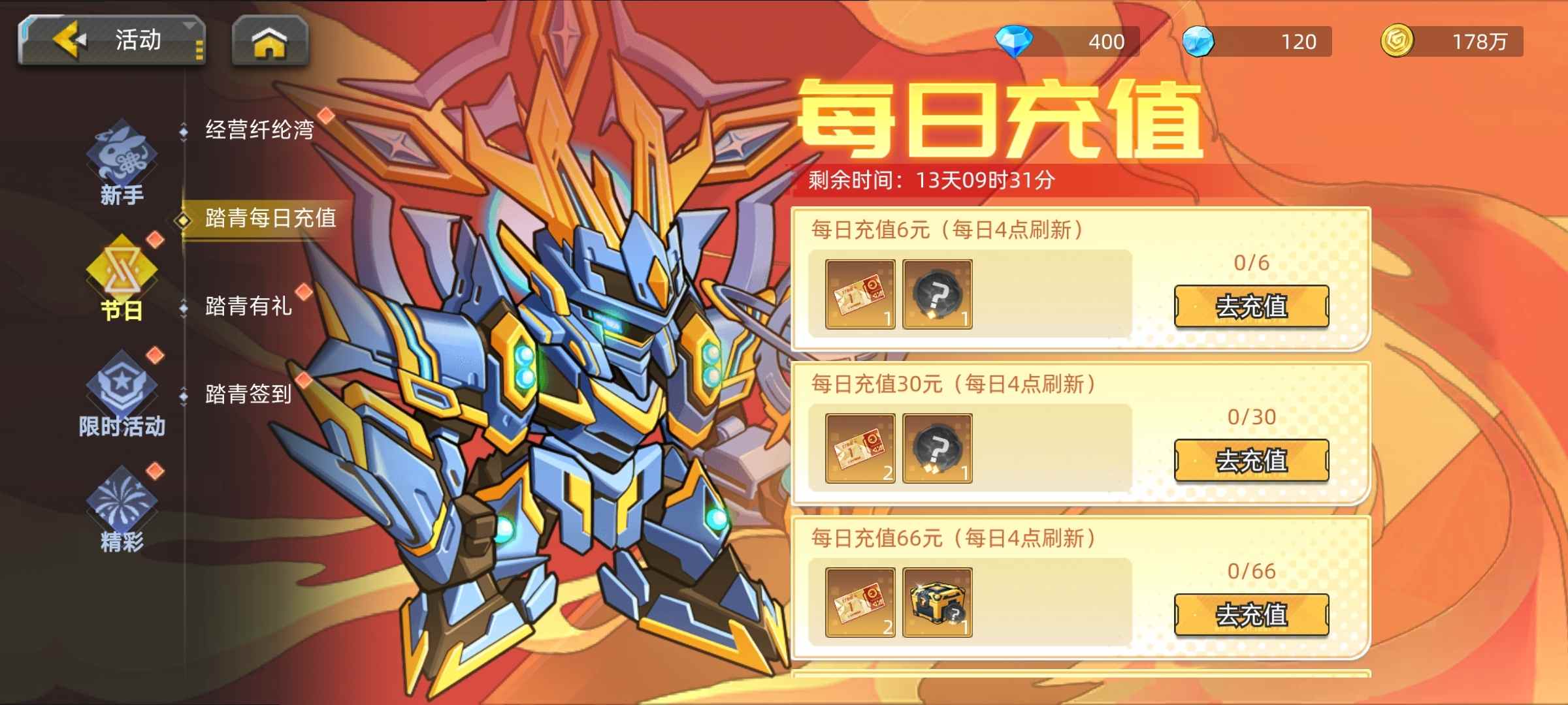 【活动4:每日充值】起始时间 2026-04-03 10:00:00结束时间 2026-04-17 03:59:59活动内容:活动期间,累计充值额度达到目标值即可领取奖励!