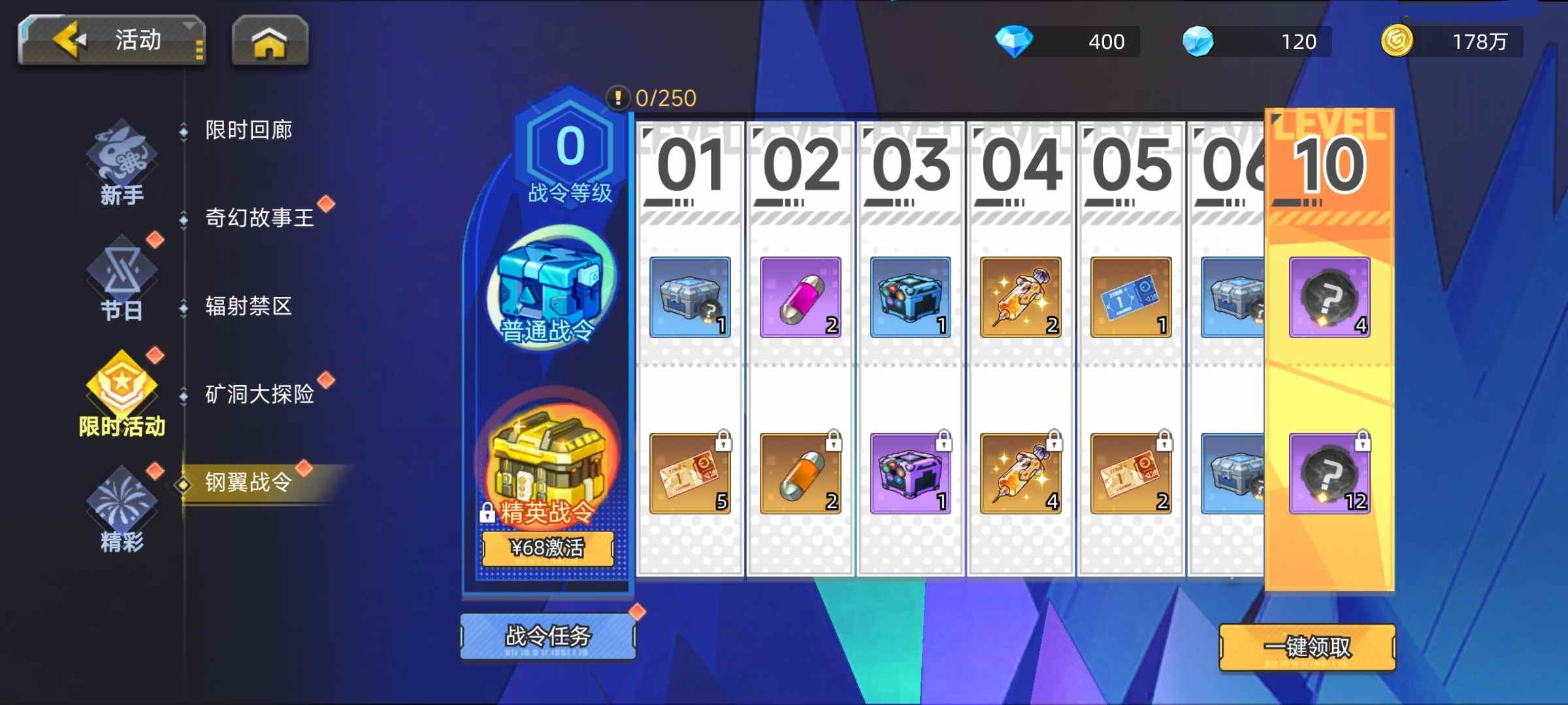 【活动5:战令活动】起始时间 2026-04-03 10:00:00结束时间 2026-04-30 03:59:59活动内容:完成战令任务升级战令等级,达到目标战令等级即可领取奖励!