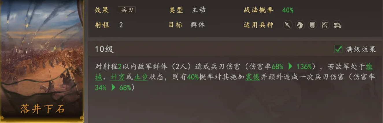 这套阵容的思路比较直接,一个奶妈带两个输出核心,没有太复杂的机制联动。想要把伤害拉满的话,可以给主公装搴旗斩将,或者无坚不摧,主公基础速度比关羽快,可以先手帮忙破防,让关羽后续输出更顺畅。刘备的白毦兵,自带两格范围内止步效果,主公可以搭配落井下石战法,有概率对被止步的敌人,触发震慑强控。不过要注意,主公和刘备的站位,必须相邻,不然落井下石的攻击范围,可能覆盖不到被止步的目标,这个细节容易被忽略。