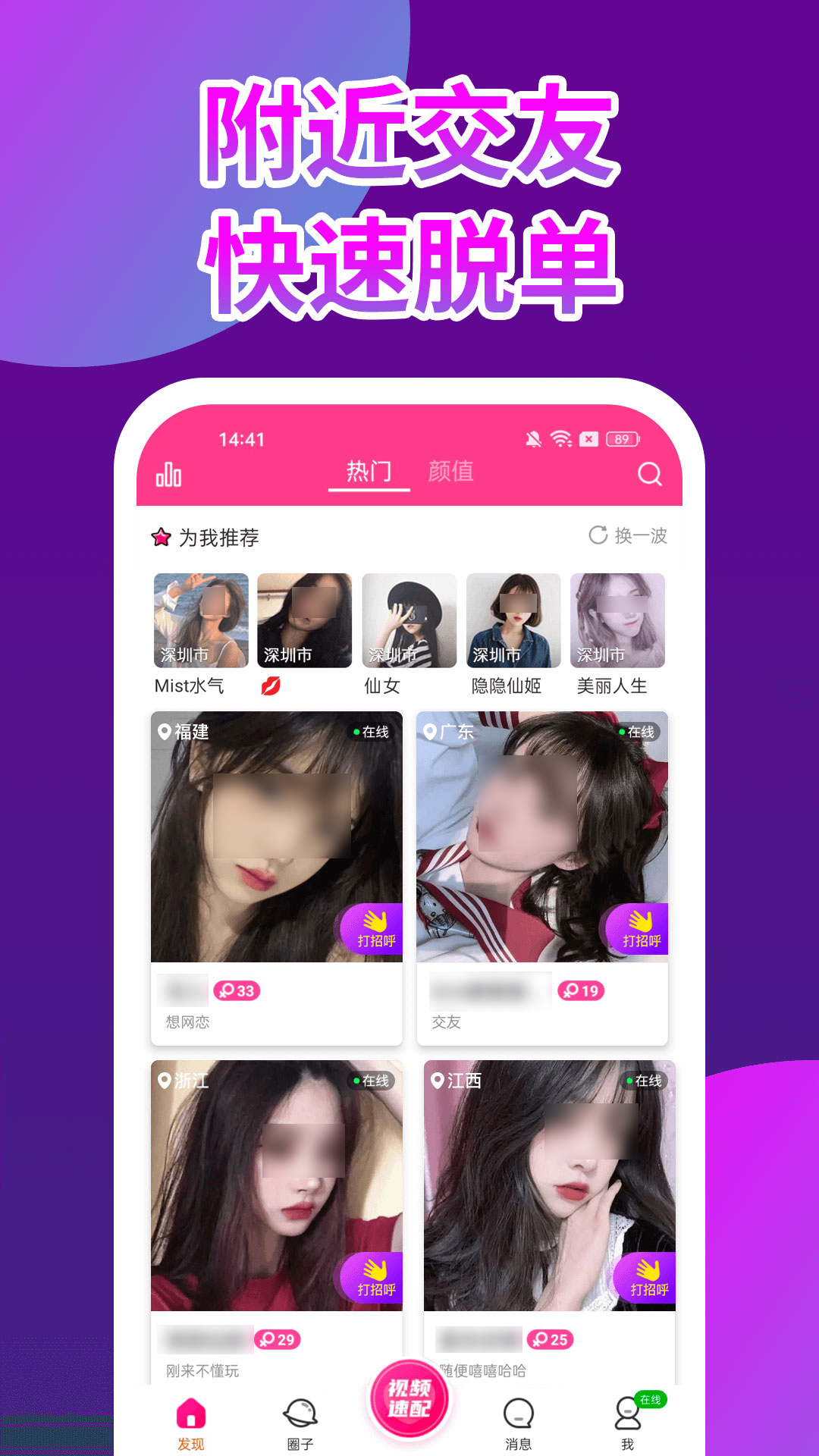 垂直服务于22–35岁职场新人与稳定就业群体,用户年龄分布集中,话题共鸣基础扎实。除图文互动外,支持双向视频速连功能,通过实时视觉反馈增强信任感,规避文字描述失真风险。匹配机制侧重职业背景与生活节奏相似性,便于发展长期稳定的同城伙伴关系。