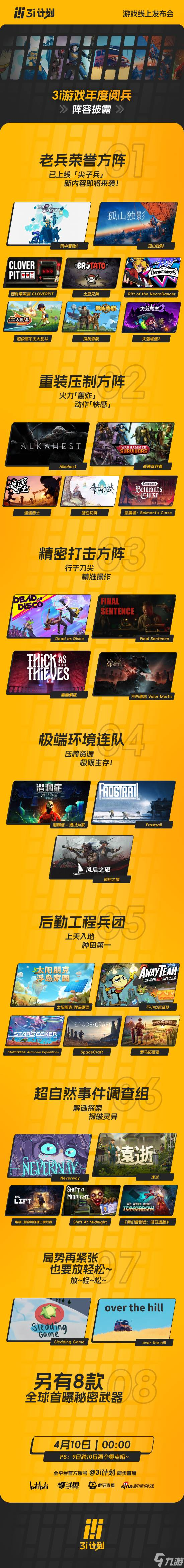 由法国独立游戏工作室Evil Empire(《死亡细胞》《波斯王子:Rogue》《恶魔城:Belmont’s Curse》)发起,全球顶尖游戏工作室共同举办的线上发布会「3i计划」终于公布了此次“3i游戏年度阅兵”的全阵容长图!