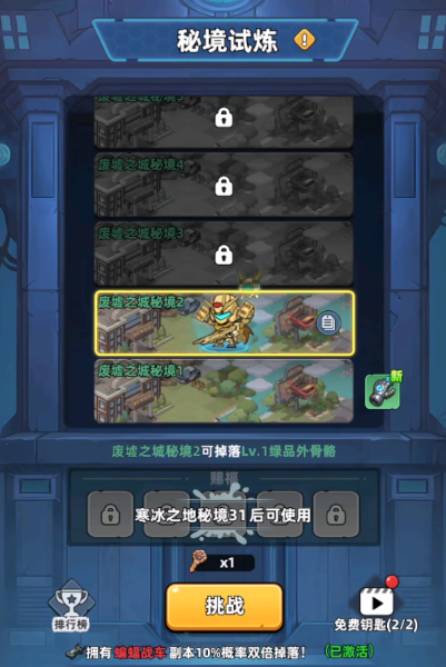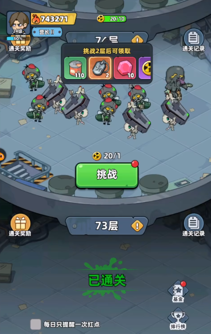 每日任务是游戏日常循环的核心驱动力。系统于每日0点准时重置任务池,确保玩家可持续获取稳定收益。任务类型涵盖怪物清剿、关卡通关等可量化目标,完成后将发放士兵识别牌、通用货币等基础资源;达成额外条件后还可解锁罐头密钥,该道具可用于兑换钻石钞票,进而购置稀缺功能型道具。当角色战力达到一定阈值,即可开启首领试炼模块——该玩法每日开放固定次数,击败不同层级首领可获得对应品质装备,每场战斗前均明确公示掉落列表,便于玩家规划挑战优先级。