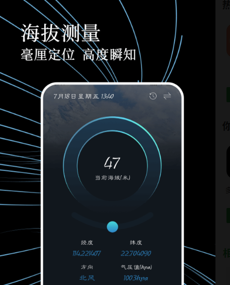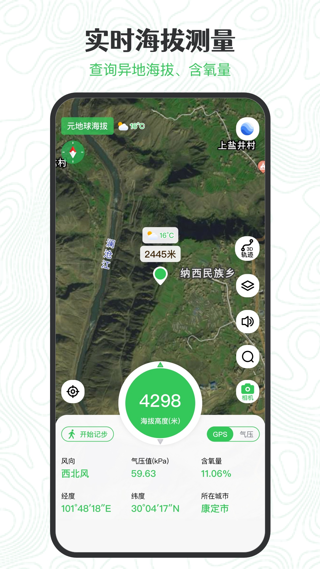测量精准又快速,不管是在野外还是在城市,都能轻松测出海拔。能自动保存历史的海拔数据,形成专属海拔轨迹,爬山的时候看着自己的攀登记录,超有成就感。还有海拔悬浮窗,开着其他app也能实时看海拔,不用来回切换。