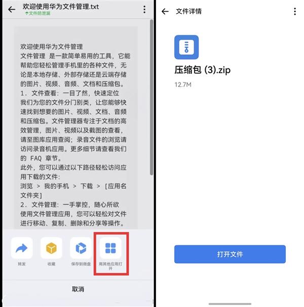 · 文件处理不绕路:用户可直接查看压缩文件,将收藏的图片、文件一键转发至微盘;防泄漏文件也可使用其他应用打开;手机系统相册、文件直接分享至企业微信,无需繁琐中转。