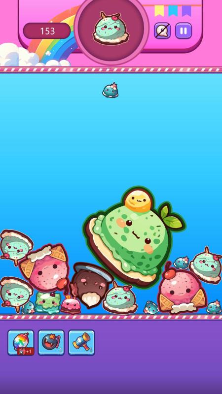 本作将合成机制融入清新甜系视觉体系,所有单位均以拟真果冻形态呈现。核心规则严格遵循“三合一级”:三个同口味果冻(如草莓、葡萄、橙子)合并为更高阶形态;达成五连合成时,除生成新果冻外,额外产出一个低阶单位,强化资源循环逻辑。美术采用高饱和度手绘风格,每种果冻具备独立造型、透明质感与动态晃动效果;搭配轻快BGM,营造出无压力、高愉悦度的休闲氛围。