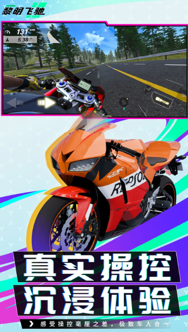 主打高拟真摩托模拟与快节奏竞速对抗,场景建模基于真实地理数据优化,呈现昼夜交替、天气变化与路面反光等细节表现。支持单人剧情闯关、多人实时排位及好友组队模式。收录哈雷Street 750、KTM 1290 Super Duke R、雅马哈R1等二十余款量产经典车型,每台车辆均还原对应引擎声浪频谱与动力曲线特性。操作逻辑高度简化,新手三分钟内即可完成起步、过弯与超车全流程,快速融入高强度竞速对抗。